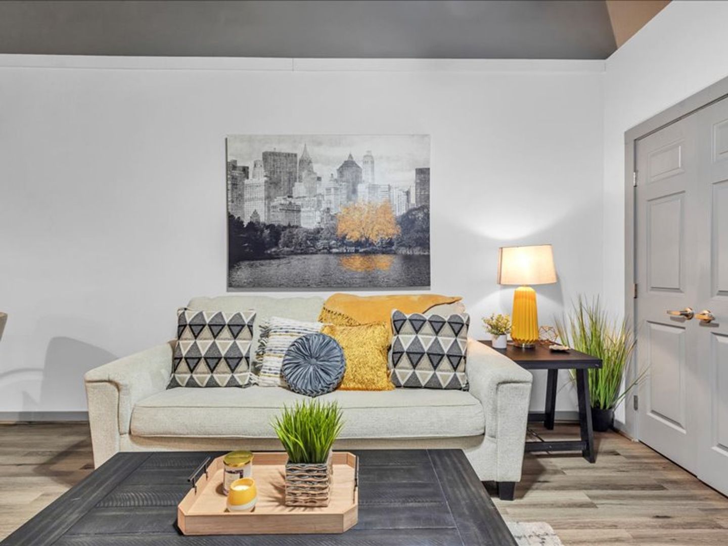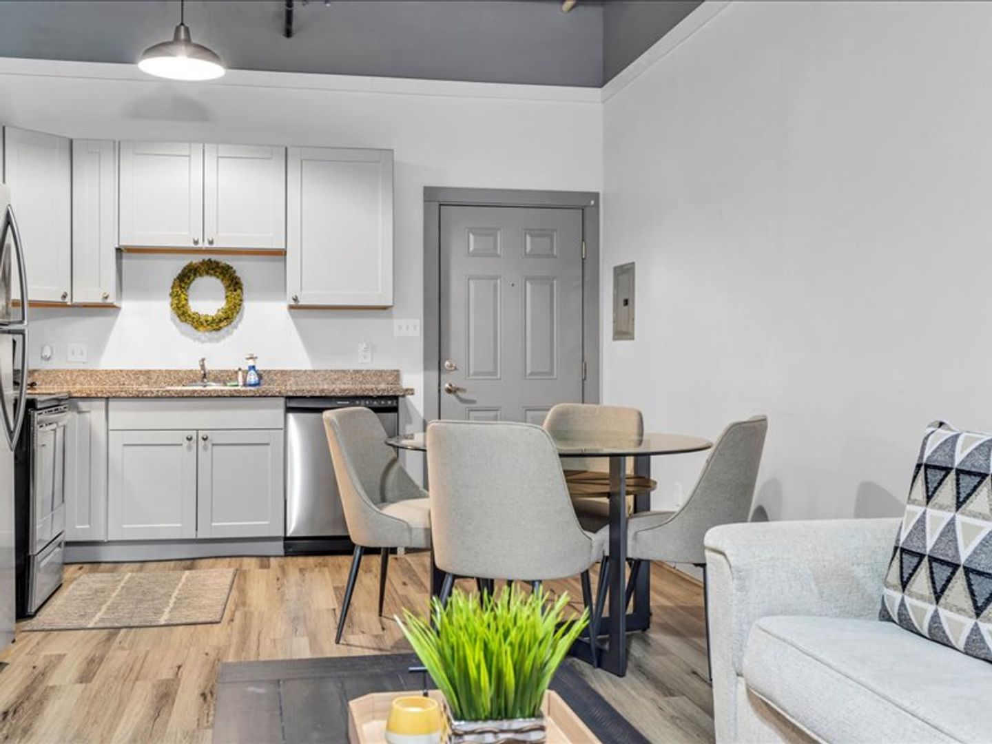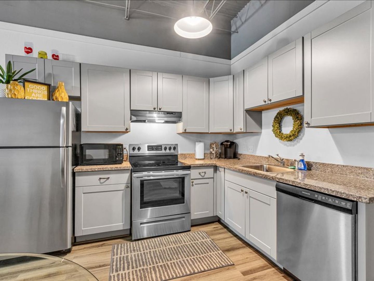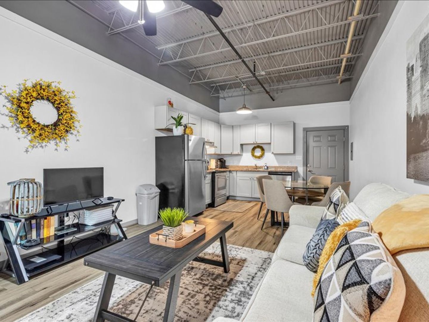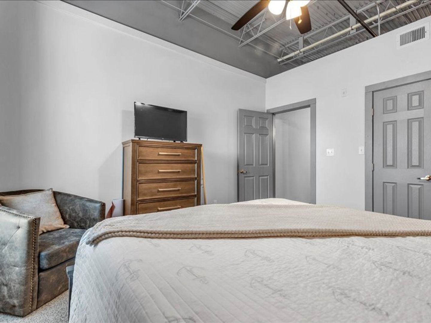 Fully furnished. Discover the allure of our recently renovated, beautiful modern lofts situated in Baytown. Boasting 12-foot exposed ceilings and brickwork, these residences exude a contemporary industrial aesthetic. Granite countertops, complemented by wood laminate flooring and soft grey walls create a sophisticated ambiance. The carpeted bedrooms provide a cozy retreat, while the convenience of assigned parking in the garage enhances your urban living experience. Ideally located just steps away from the vibrant arts district, these lofts offer a highly walkable lifestyle. Enjoy preferred discounts if you're a Lee College student, with the campus conveniently across the street. Welcome to a harmonious blend of style and convenience. Call today for a showing!