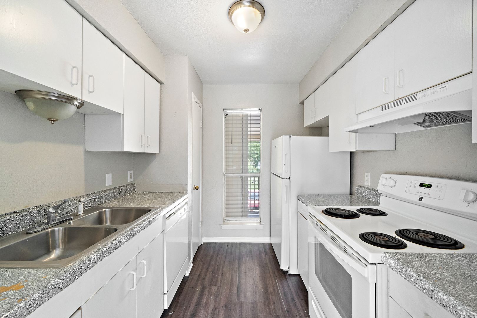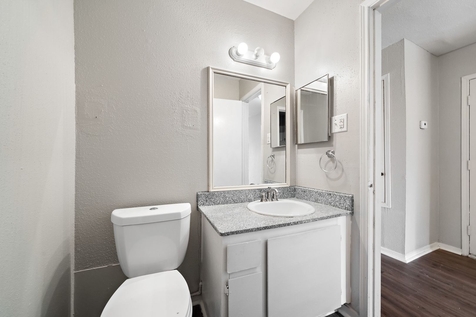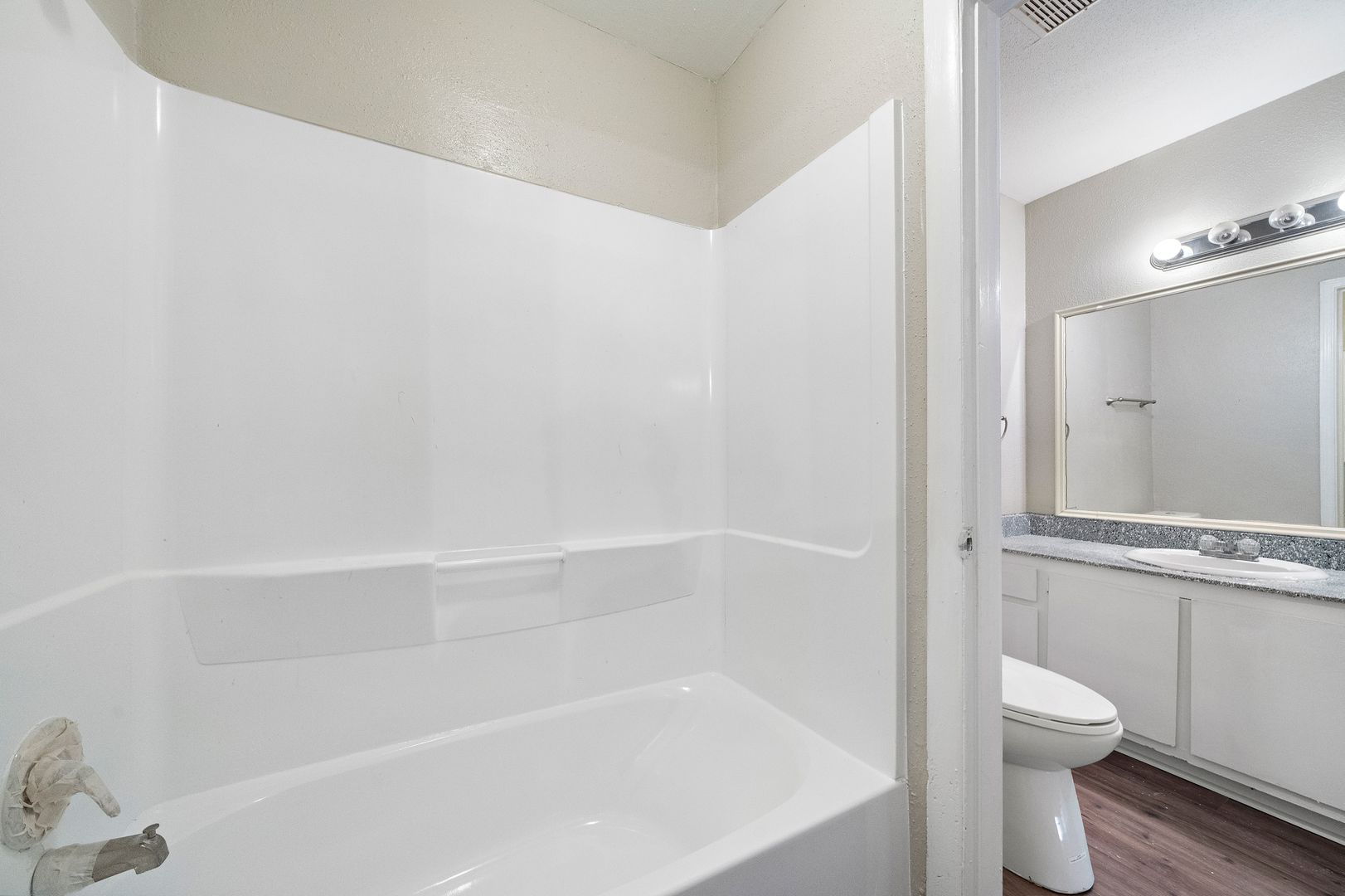Lovely 2 bedroom 1 and 1/2 bathroom apartment home with Large Covered Balcony, Fresh Neutral paint throughout, BRAND NEW Vinyl Plank Wood floors throughout, Faux Granite countertops in kitchen and bathrooms, Hollywood lighting in bathrooms with decorative wood trimmed mirrors, Ceiling fans in bedrooms. Lots of windows! On-Site laundry facility. Pet friendly, just no aggressive breeds, no animals over 50 lbs and 2 pet limit. Come lease it now before it's gone. It won't last long!!!